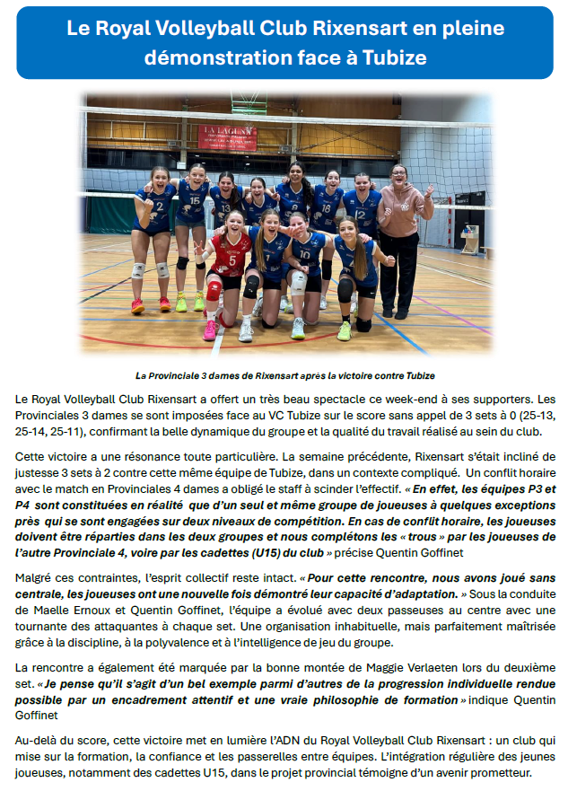 Le Royal Volleyball Club Rixensart en pleine démonstration